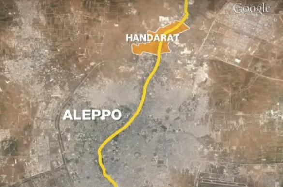 Government forces attack Handarat just outside Aleppo in bid to disrupt rebel supply lines.
