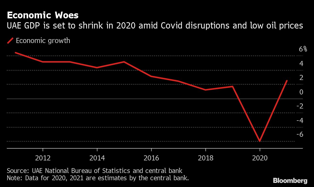 The outlook is slightly better than forecasts from the International Monetary Fund, which expects a decline of 6.6% this year. The UAE economy last contracted by more than 5% in 2009, according to the fund.