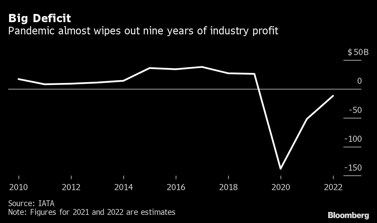 The combined $201 billion in net losses over the pandemic-blighted period eclipses close to nine years of industry earnings, based on IATA figures. While domestic and regional travel have begun to rebound, there’s been little recovery in the globe-spanning business routes so crucial to many carriers.