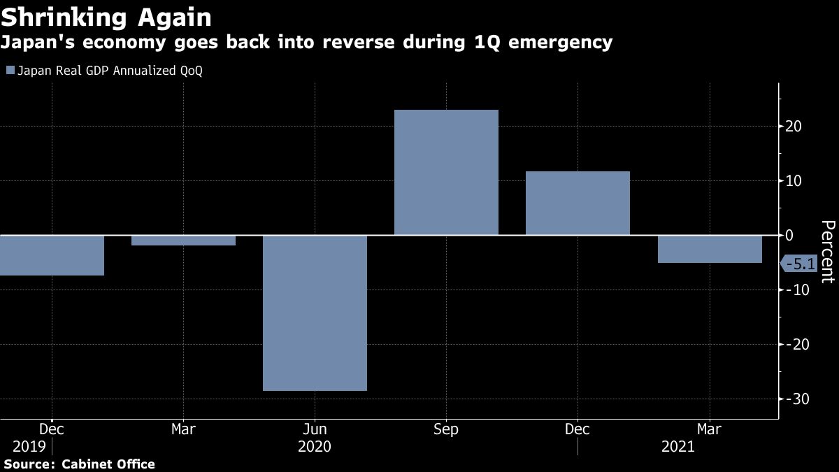 The dismal reading and extended state of emergency curbs have heightened the risk Japan may shrink again in the current quarter and slide back to recession, defined as two straight quarters of recession, some analysts say.