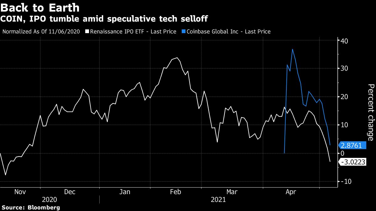 That left the shares just above the $250 reference price for its April direct listing. An exchange-traded fund that tracks shares of companies that recently went public plunged for an eighth day, the longest slide since 2015.