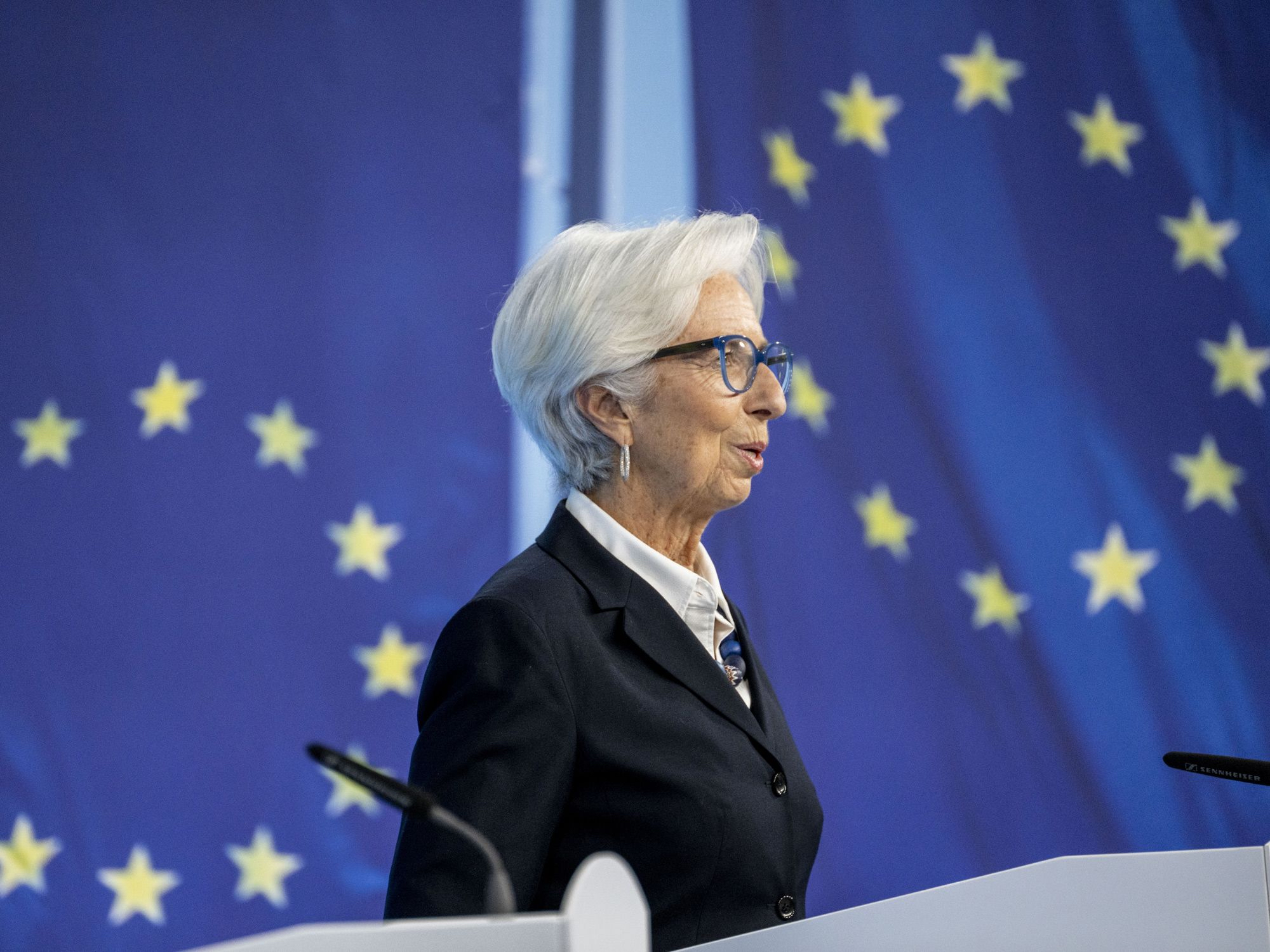 European Central Bank’s chief delivered surprisingly hawkish comments Thursday, citing data on unexpected record inflation.