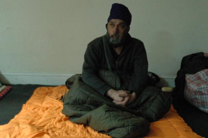 Bhupinder Singh sips from a metal cup of steaming chai as he prepares to sleep. He left his wife and two children in Kapurthula 10 years ago,. eventually joining the marginalised community of undocumented migrants in the UK after hop-skipping his way through Europe.
