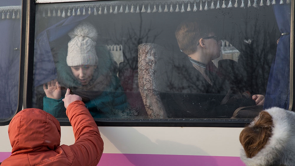 Avdiivka, Ukraine – Svetlana Zadorozhnyuk crunches through the new snow towards the evacuation bus, holding the hand of her 10-year-old daughter. This is the second time she has sent her little girl away from the fighting in eastern Ukraine, but that has not made it any easier.
