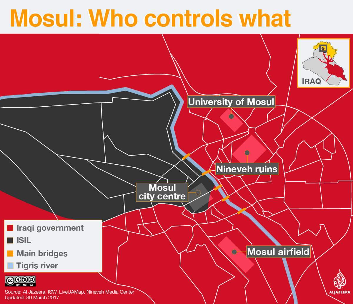 Mosul, Iraq’s second-most populous city, fell to an ISIL blitzkrieg in June 2014. The group’s fighters poured over the border from Syria, seizing large swaths of northern Iraq. Two years later, the Iraqi army – backed by local militias, Kurdish forces and air strikes carried out by an international coalition – began an operation to drive ISIL out of the city.