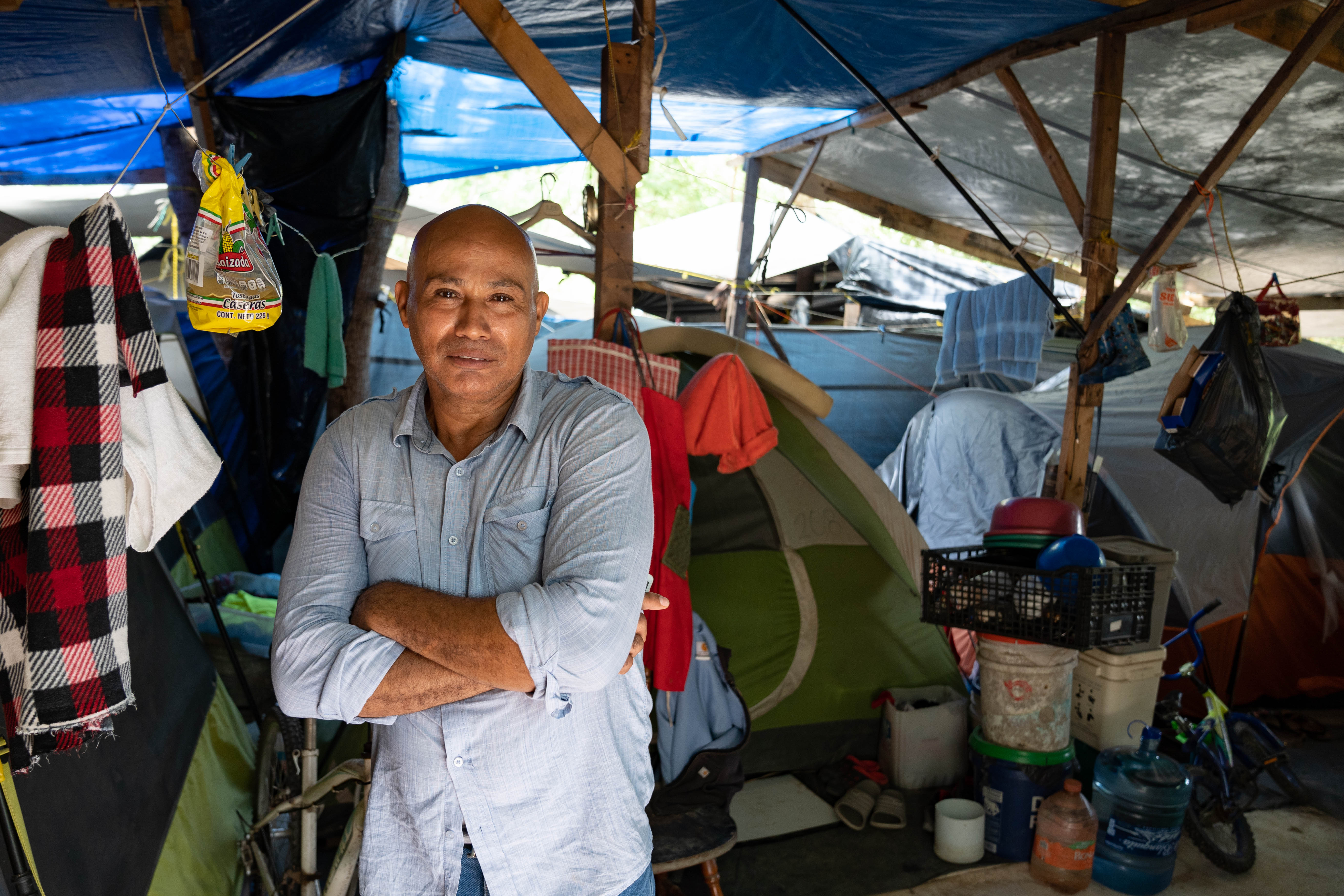 He sits in the shaded waiting area by the camp’s clinic during a moment of downtime between patients. Other nurses, translators and volunteers buzz around as he talks about his life in Matamoros.