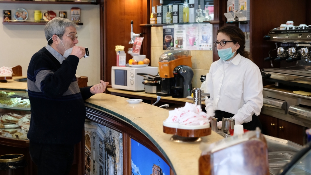 A customer drinks coffee at a bar in Messina, Sicily, on March 10, 2020 as Italy imposes unprecedented national restrictions on its 60 million people to control the coronavirus [Giovanni Isolino/AFP]