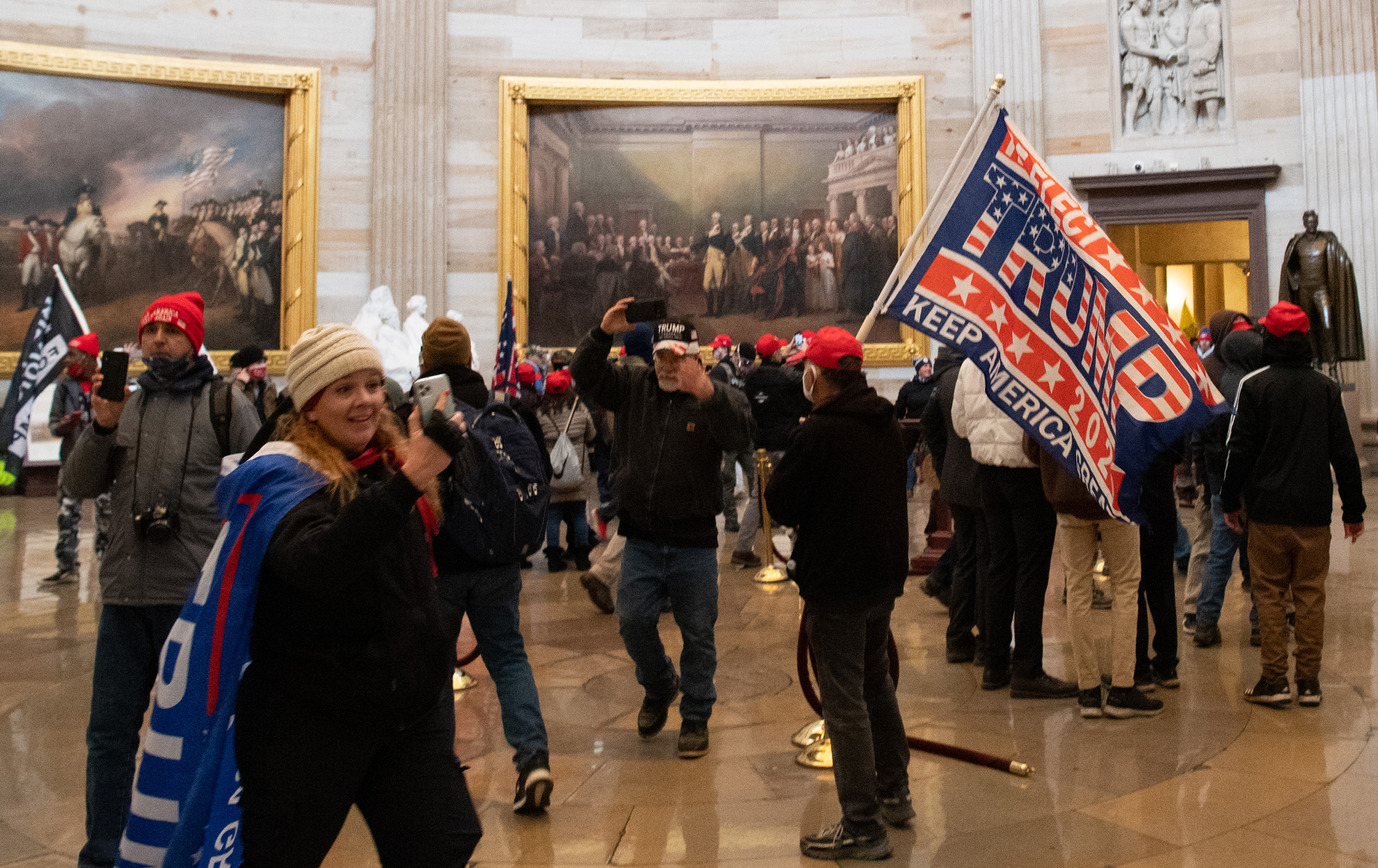In one set of images, there is a distinctly “day pass at Disney World” atmosphere, as pro-Trump rioters giddily wander in and around the Capitol building. They take selfies to mark the occasion, share laughs, and loiter around the grounds.