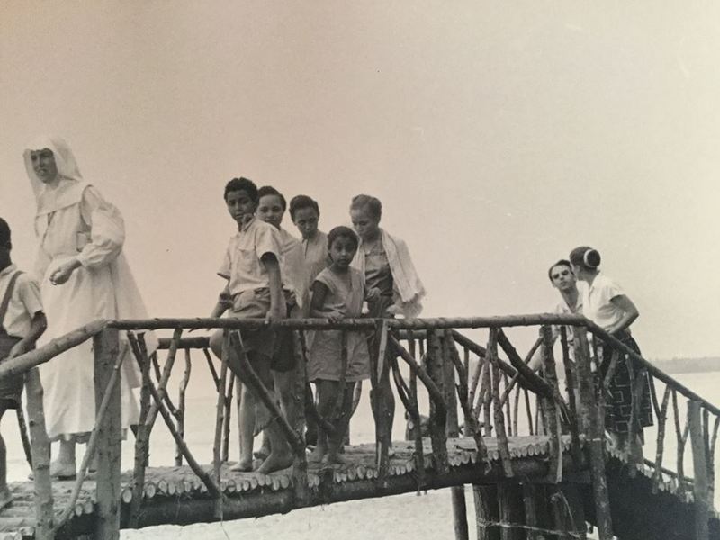 Monique remembers travelling with her uncle, aunt and grandmother who carried her. She could tell something was wrong from her grandmother’s sadness. They walked west for about two days, crossed a river and slept in cabins used for drying cotton. When they reached Dimbelenge they hitched a ride northwest on a truck carrying the body of a woman who had died in childbirth. It was headed for Katende, in today’s Kasai Central province, where the St Vincent de Paul sisters’ mission was. Monique fell asleep. It must have been a Wednesday because weddings happened on Wednesdays and when she awoke outside the mission she saw a young Congolese couple, the bride dressed in white, and strangers everywhere. But her own family was gone. She remembers walking through the crowd, crying, until an older girl from the mission brought her inside to the others.
