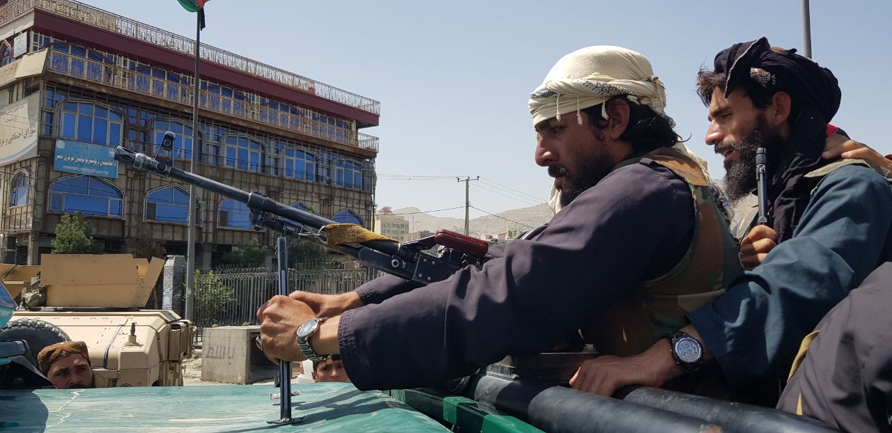 Taliban members patrol the streets of Afghan capital Kabul on August 16, 2021, as the Taliban took control of Afghanistan after President Ashraf Ghani fled the country [Sayed Khodaiberdi Sadat/Anadolu]