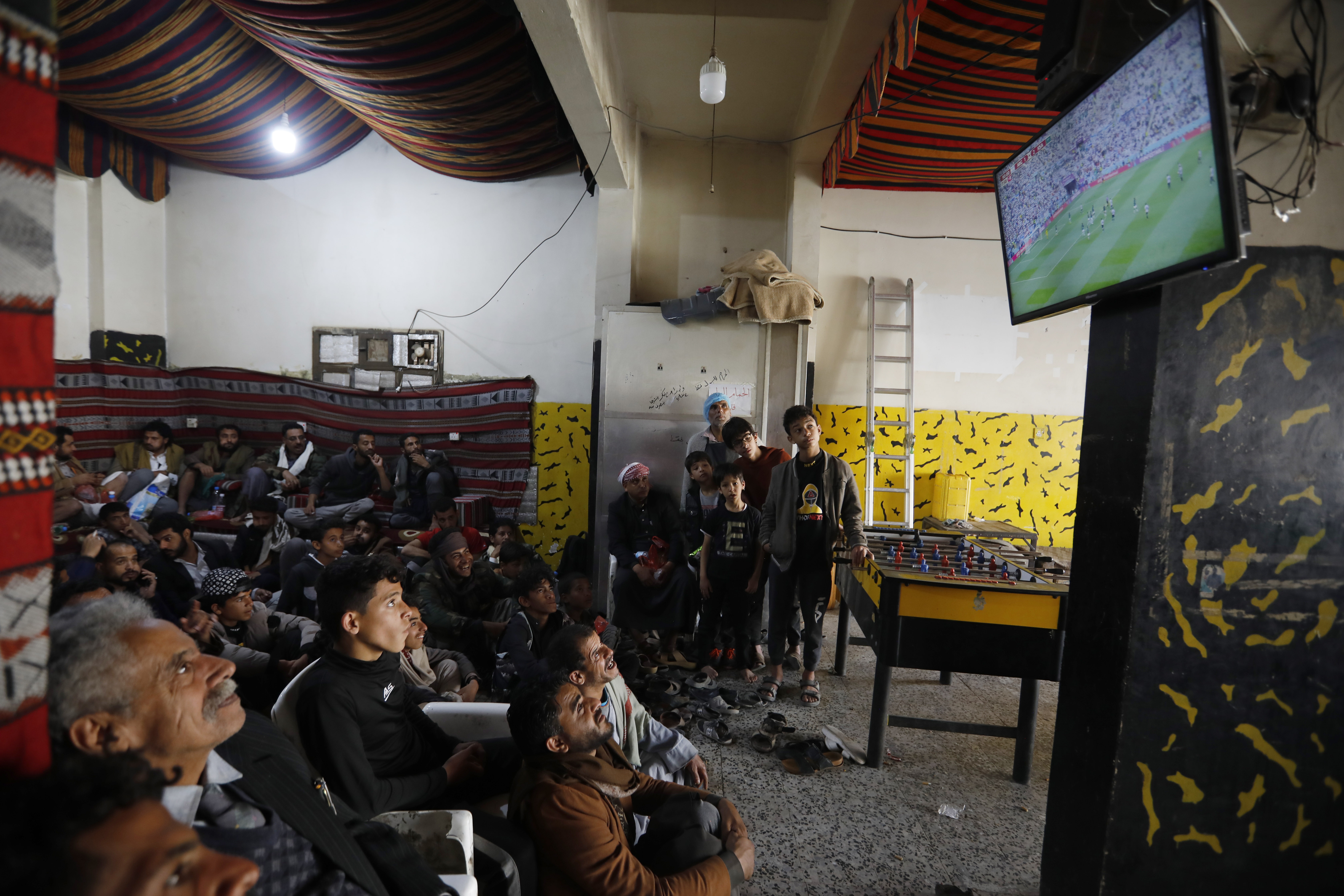 Sanaa, Yemen – In Maeen district in the heart of the Yemeni capital Sanaa, about 10 street vendors gathered on the side of a busy road to watch the Argentina-Saudi Arabia match.
