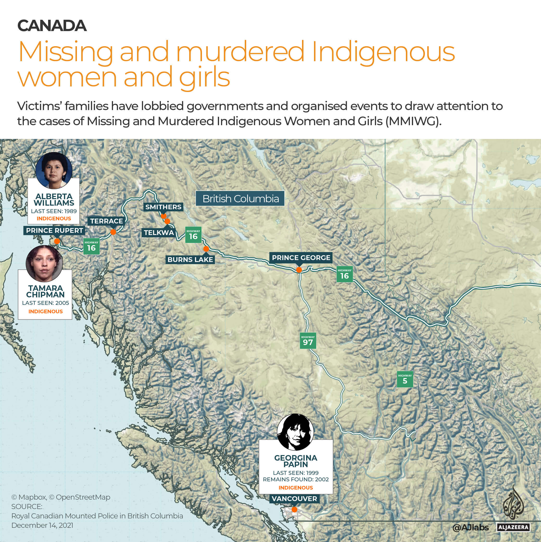 In this six-part series, Al Jazeera tells the stories of some of the Indigenous women and girls who have gone missing or been murdered along an infamous stretch of highway in British Columbia, Canada.