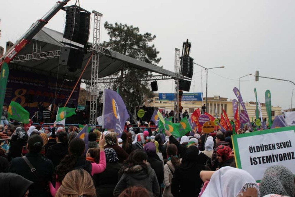 Gultan Kisanak, the female co-leader of Peace and Democracy Party (BDP), also attended the demonstration initiated by Democratic Free Women Movement, a Kurdish NGO. BDP has 29 members in parliament.