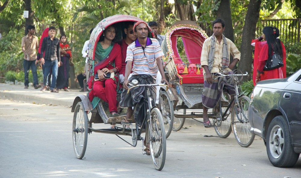 According to a report by the Dhaka Urban Transport Network in 2011, the average income of a rickshaw-wallah is about $4 a day, excluding rental fees for the rickshaws that can cost $1 per day.