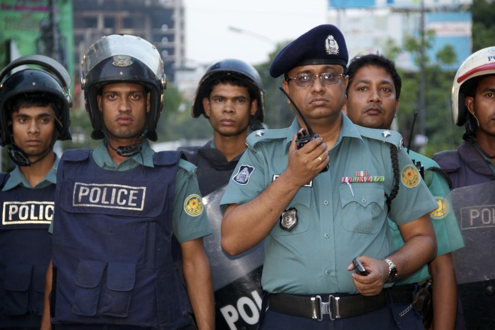 As the young demonstrators marched towards Baridhara chanting “lungi, lungi”, they were stopped by dozens of police blocking the entrance with guns and batons in hand. Protesting is not allowed in diplomatic zones, according to officers on the scene. Within an hour, the crowd had largely disappeared.