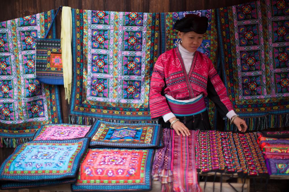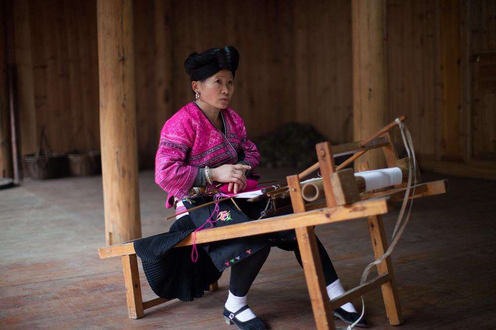 Yao women are well known for their colourful traditional dresses decorated with bright embroidery. They use wooden looms to weave their clothes, and it can take up to three months to finish a traditional costume.