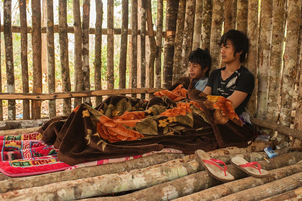 Two young Palaung villagers who were caught smoking methamphetamine by the TNLA. They will spend two weeks inside a rough wooden cell.