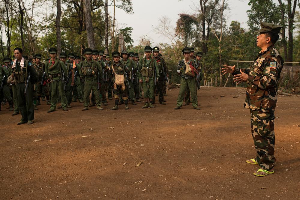TNLA deputy commander-in-chief Tar Khu Lan gives a speech to encourage his soldiers.