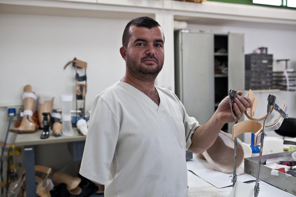 Hussein Ghandour is a land mine survivor who has worked as a prosthetics technician for 13 years. He was seven when he was injured.