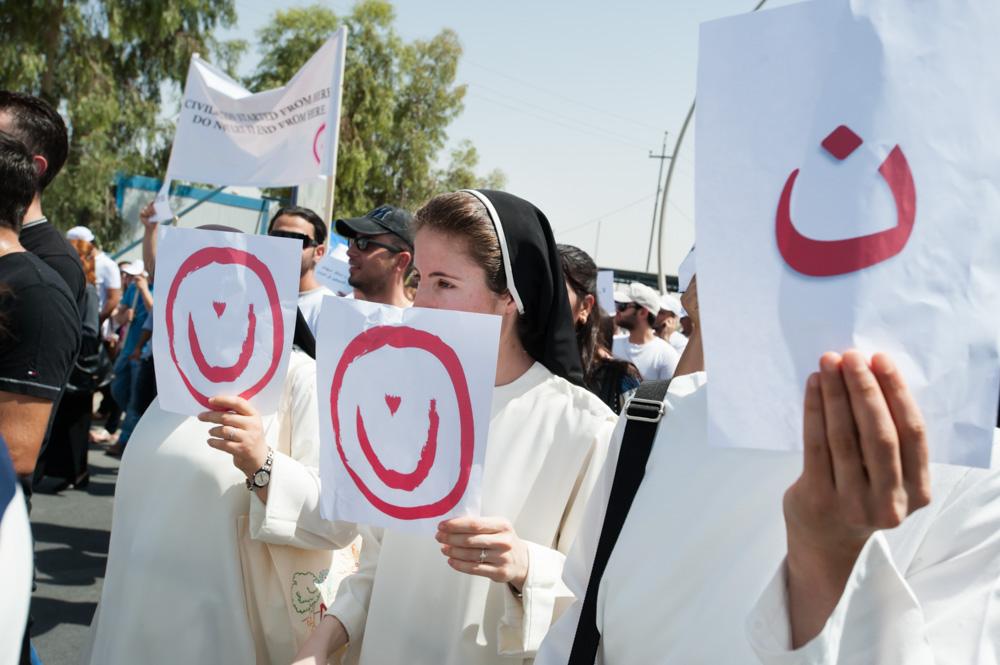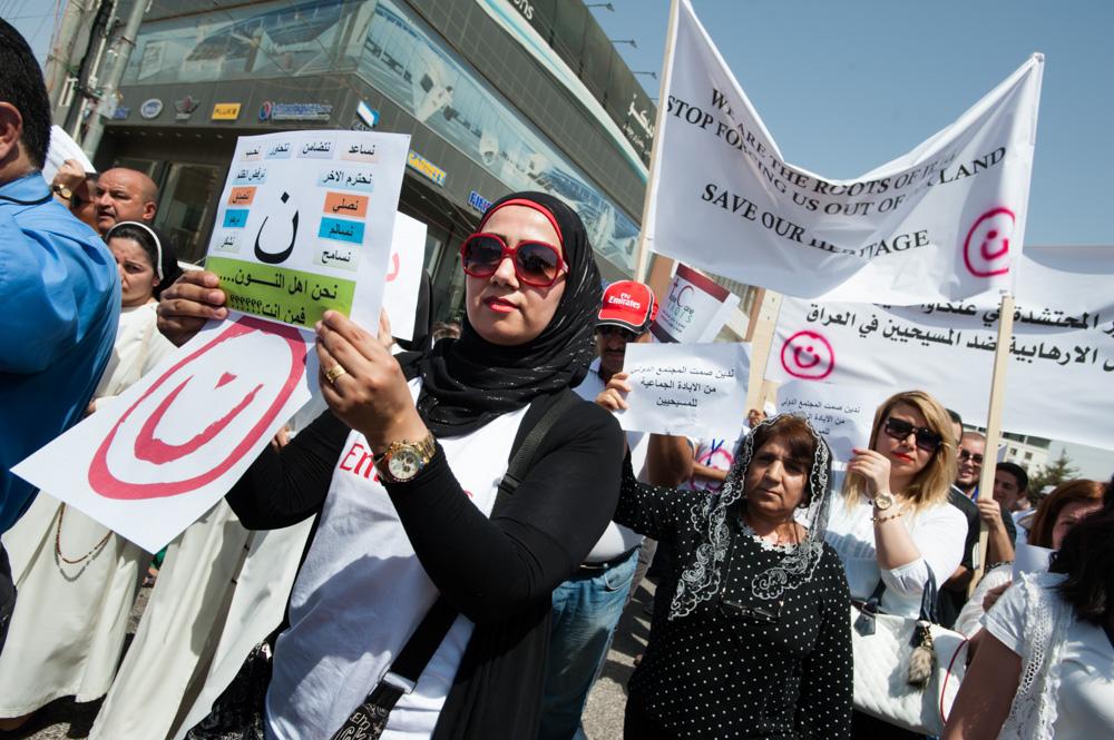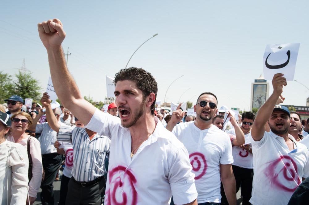 Zebari was among the more than 1,200 Christians, many of them carrying signs or shirts emblazoned with the symbol, who marched in a demonstration to the UN headquarters in Erbil during a visit by Secretary-General Ban Ki-moon, demanding greater protection for Iraq’s Christian minority. “We are not happy with just denouncements,” says Zebari. “We are looking for actions.”
