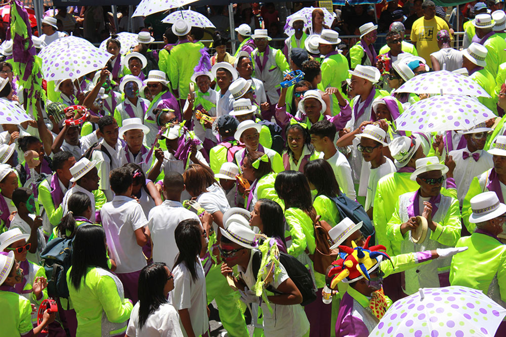 Today, the celebration continues. When the minstrels march, banjos, trumpets and drums reverberate through the city centre, which turns into a sea of sequins, glitter and colourful umbrellas.