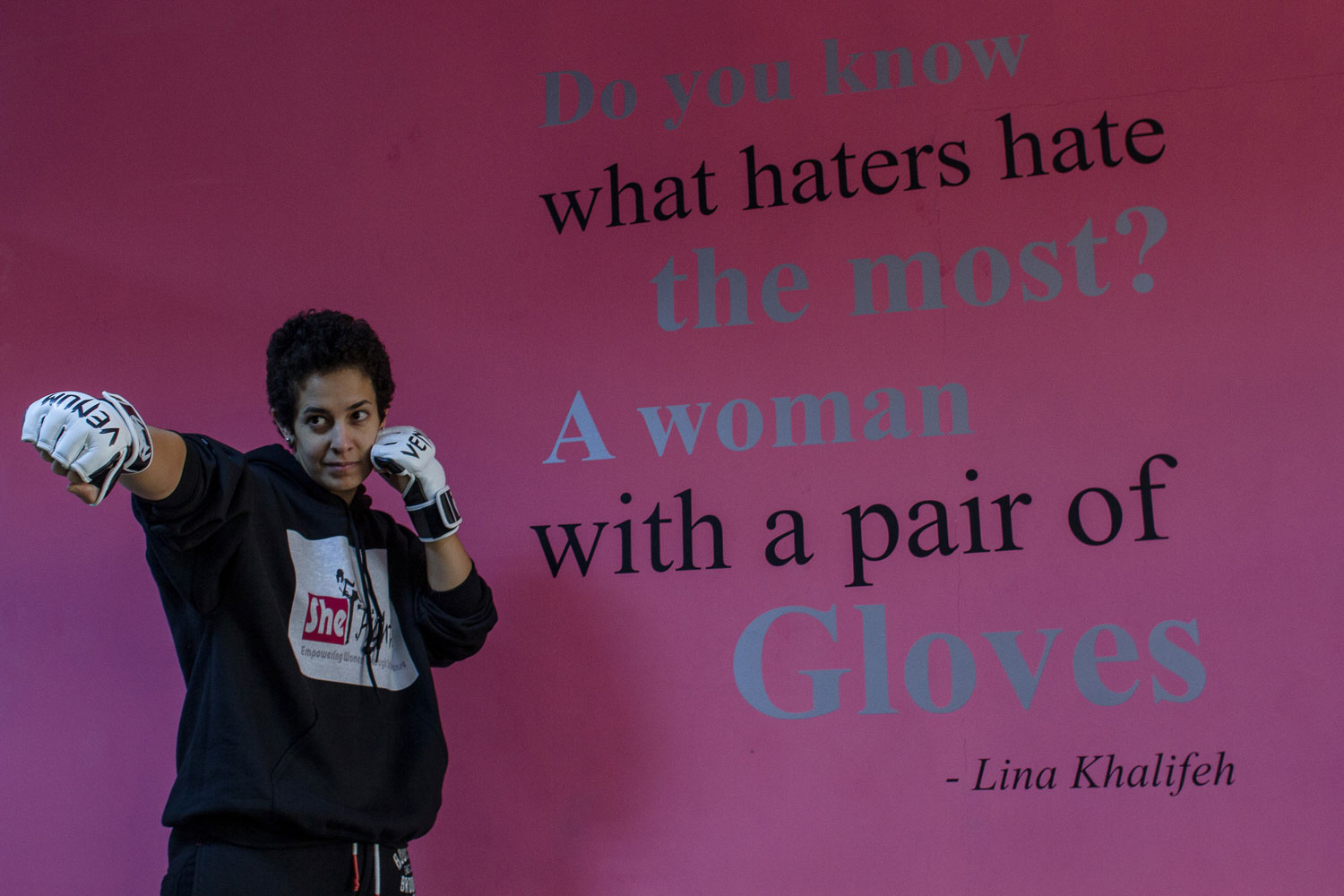 Years ago, Khalifeh said that she decided to begin teaching self-defence after she saw a colleague being physically abused by her brother. Today, SheFighter has trained more than 3,000 women, and Khalifeh hosts workshops outside the capital Amman and at universities. She is aiming to expand further, opening more gyms, both in and outside Jordan.