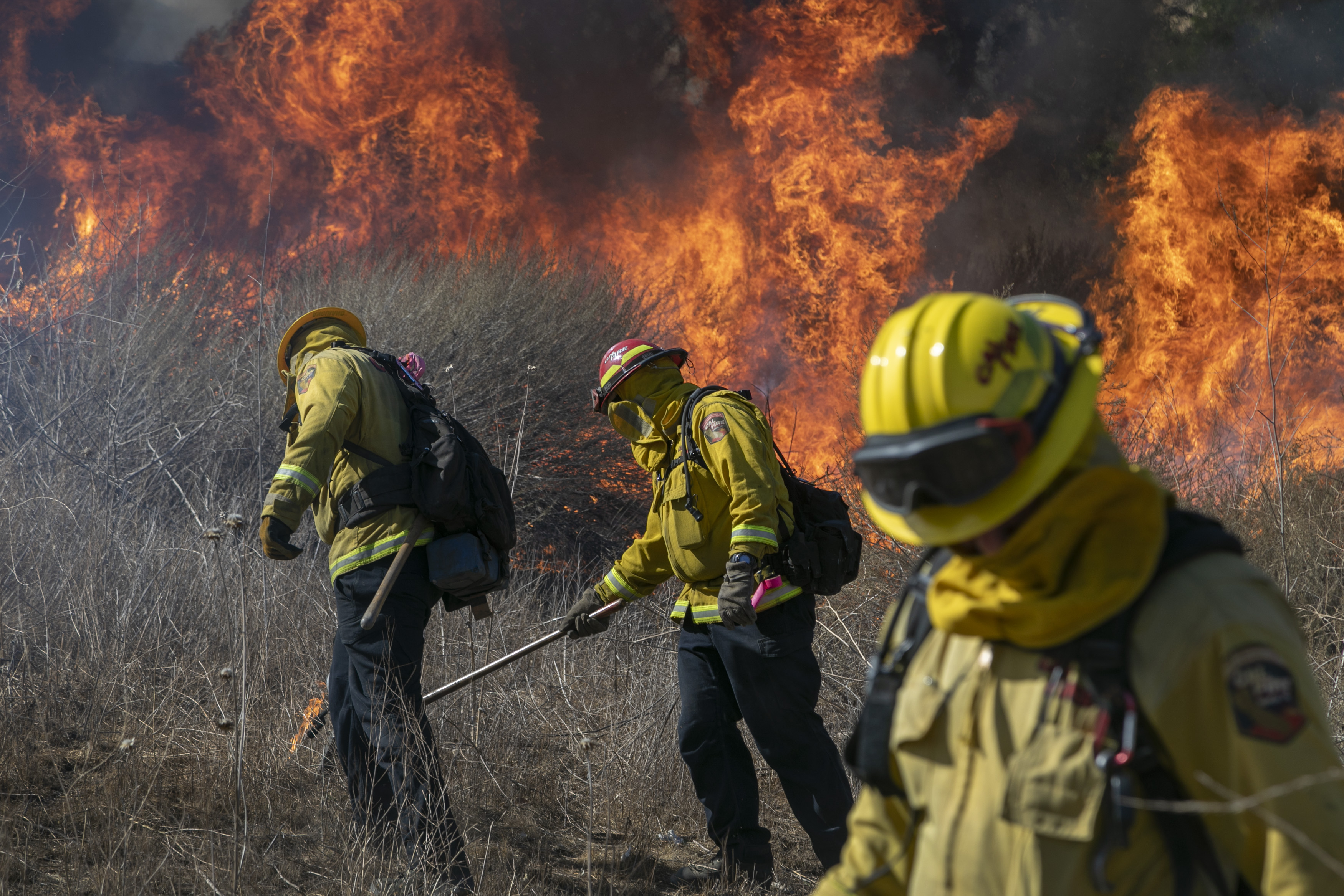 Two firefighters were critically injured fighting the blaze, with second- and third-degree burns over much of their bodies, the OCFA said.
