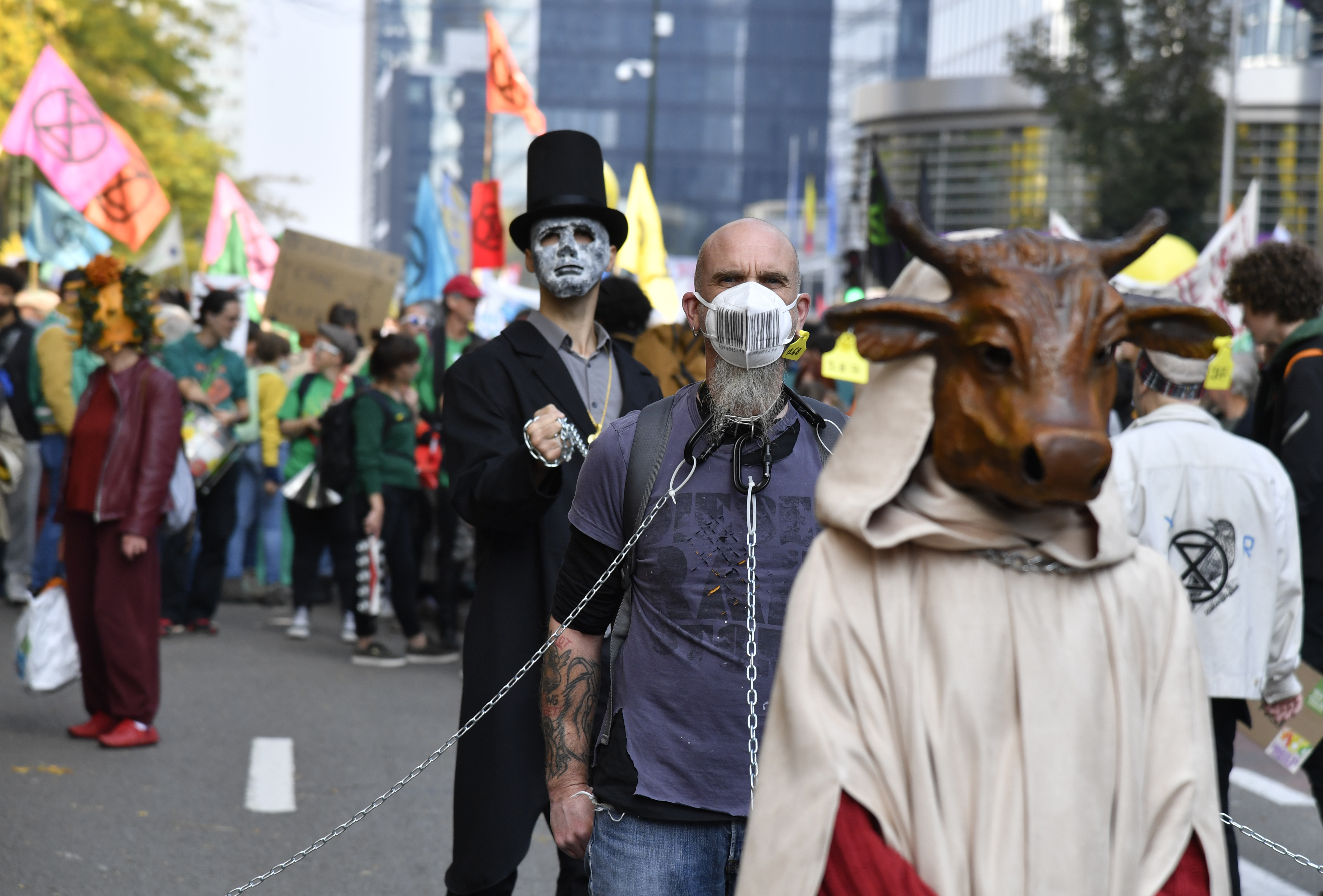 Dressed as endangered fish or tigers or wearing toy polar bears on their heads, demonstrators marched through Brussels on Sunday to push world leaders to take bolder action to fight climate change at the UN climate summit in Glasgow starting this month.