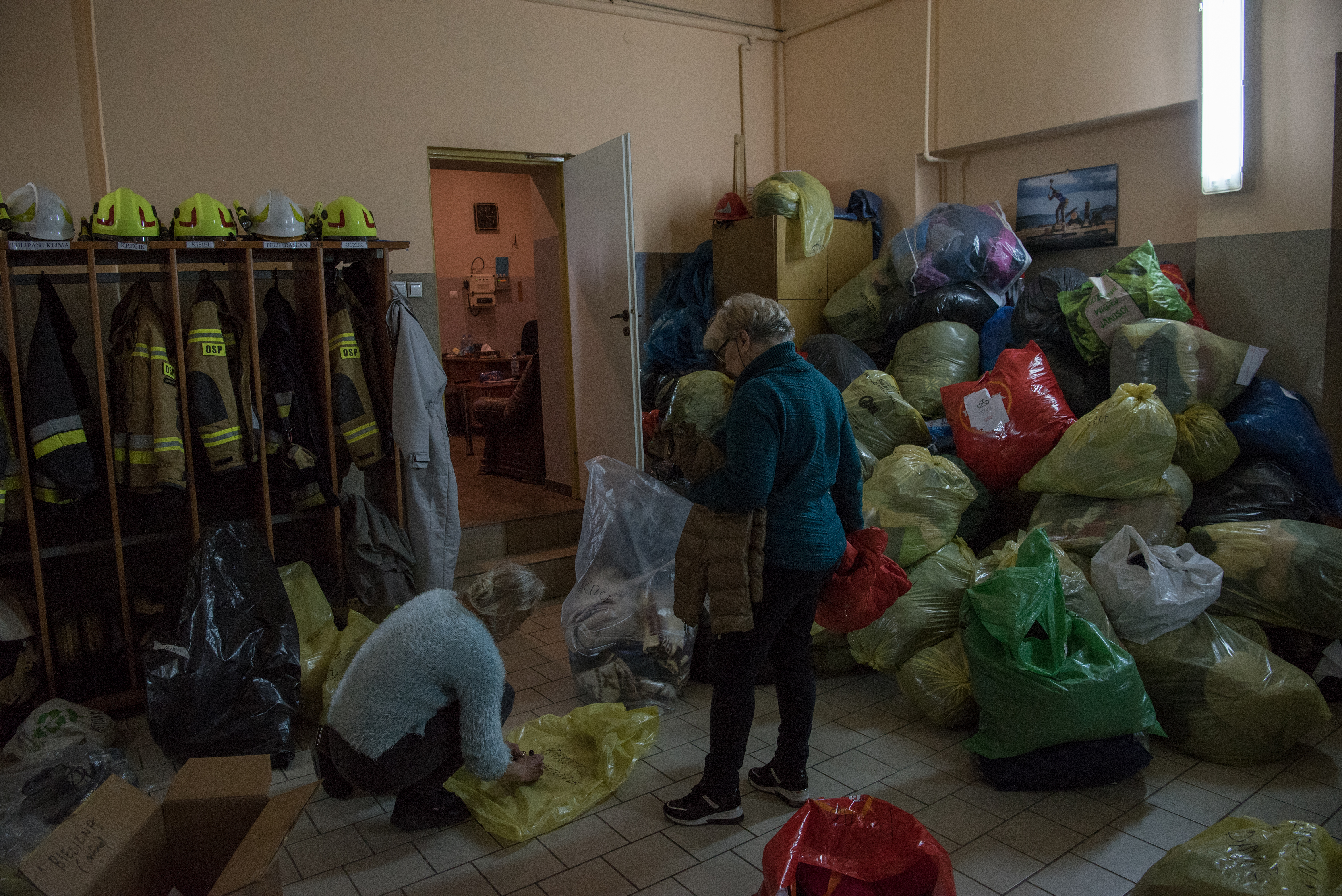 A community spirit is palpable on the ground, with a local fire station collecting food and warm clothes for people in need.