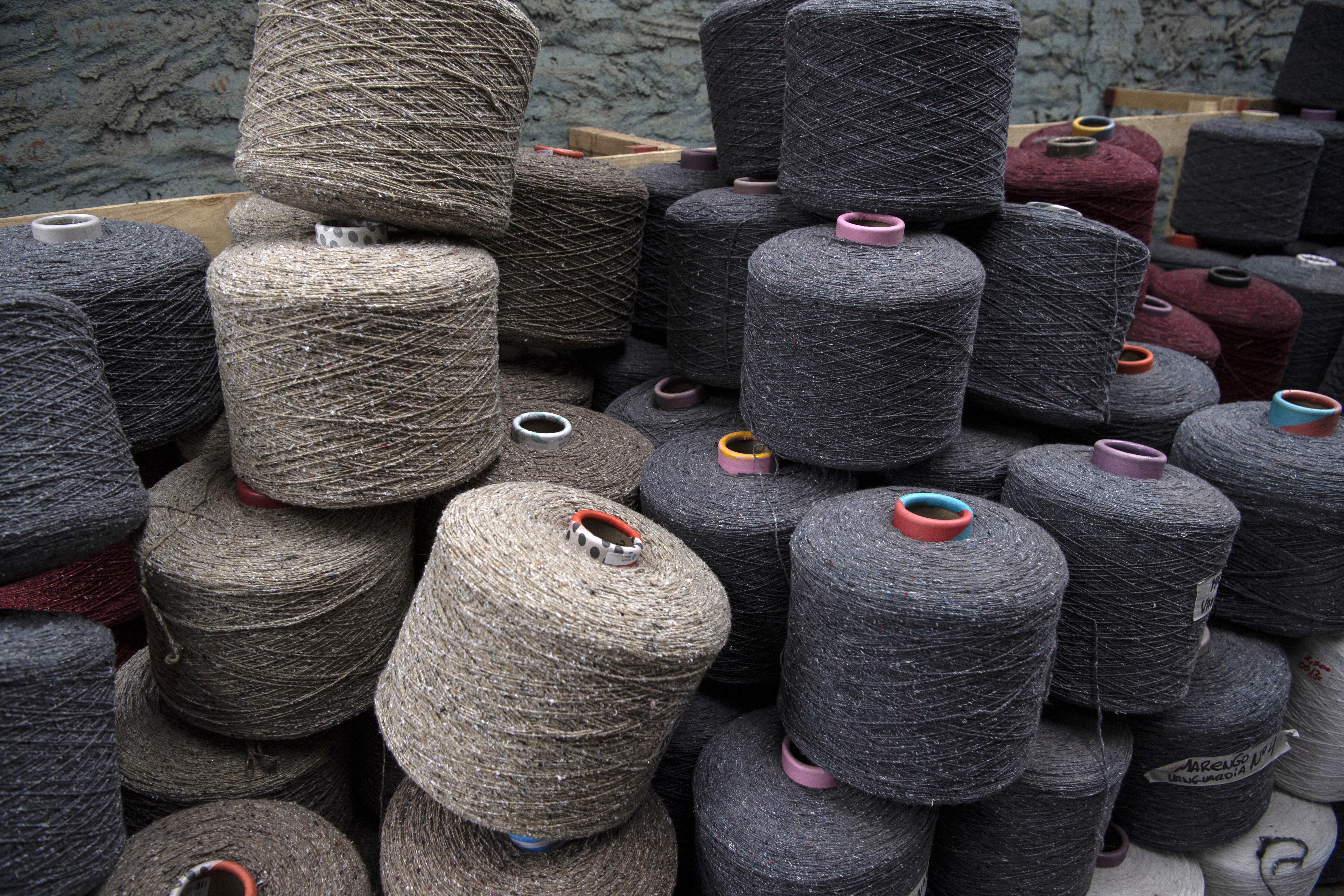 Ecologic yarns made of used clothes at the Ecotex factory. [Martin Bernetti/AFP]