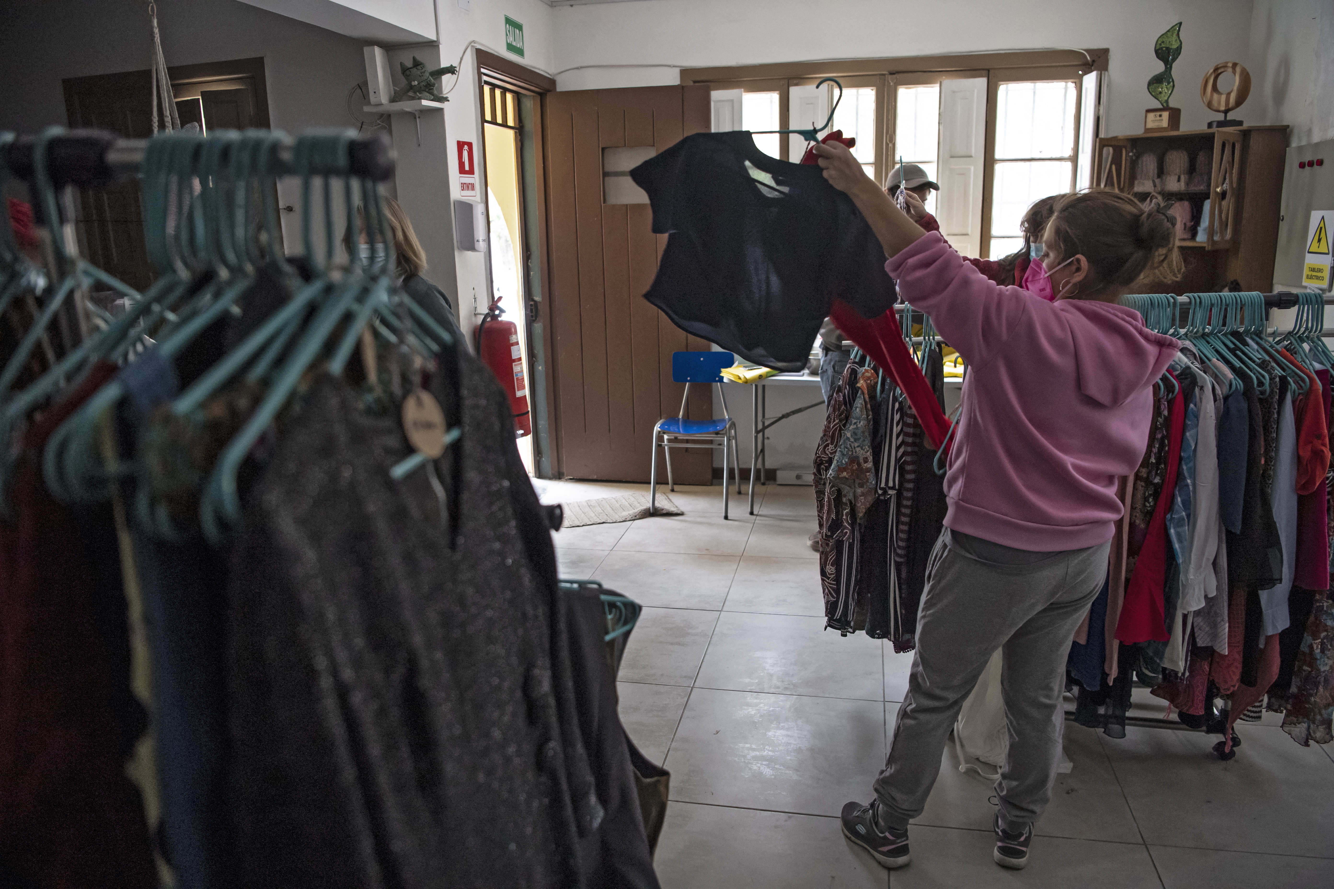 A woman shops for used clothes at the Ecotex ecologic yarn factory. [Martin Bernetti/AFP]
