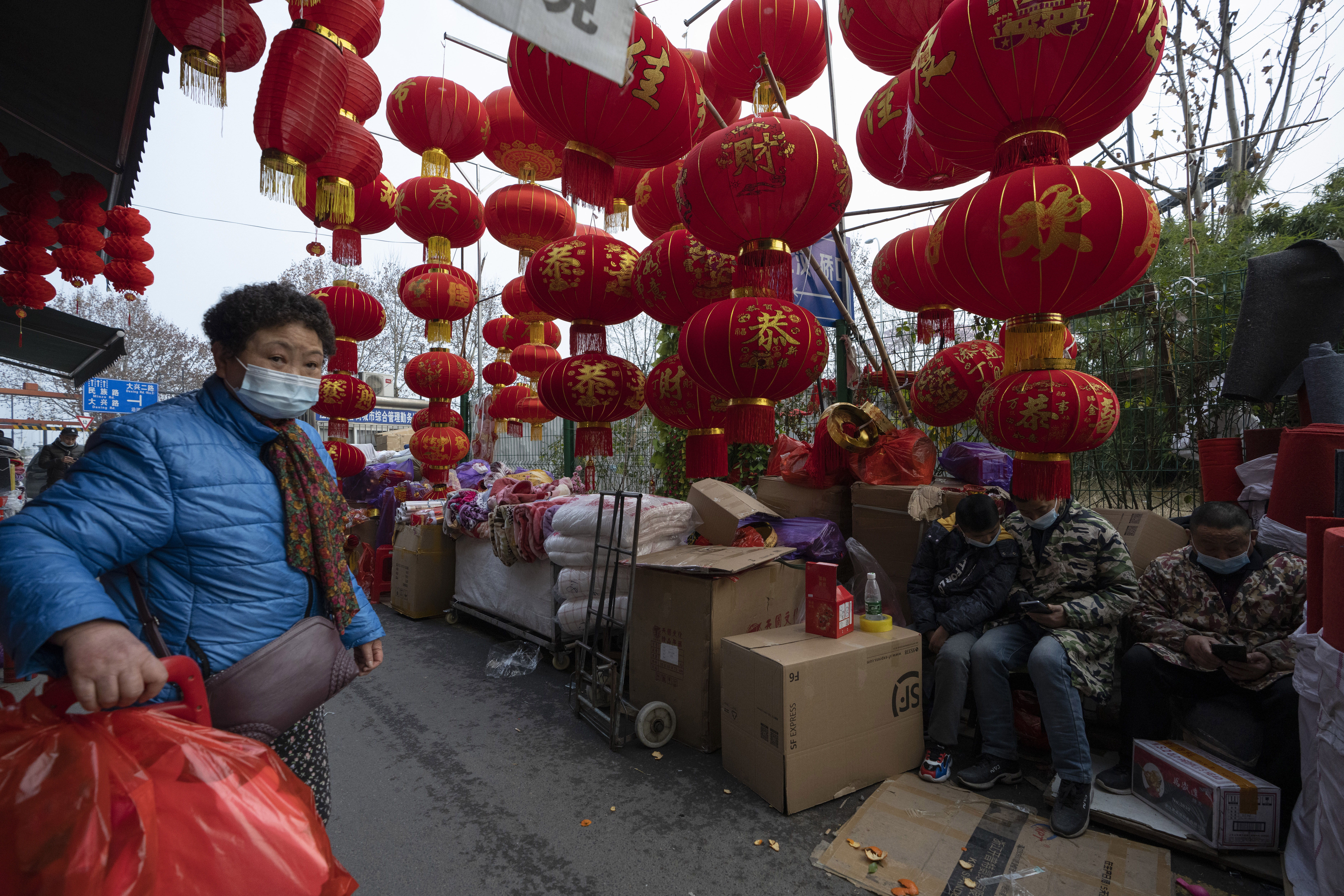 Vibrant red lanterns line an alley in Wuhan, China, expectant decorations for a holiday that traditionally sees these alleyways thronged with revellers. But customers only trickle in.
