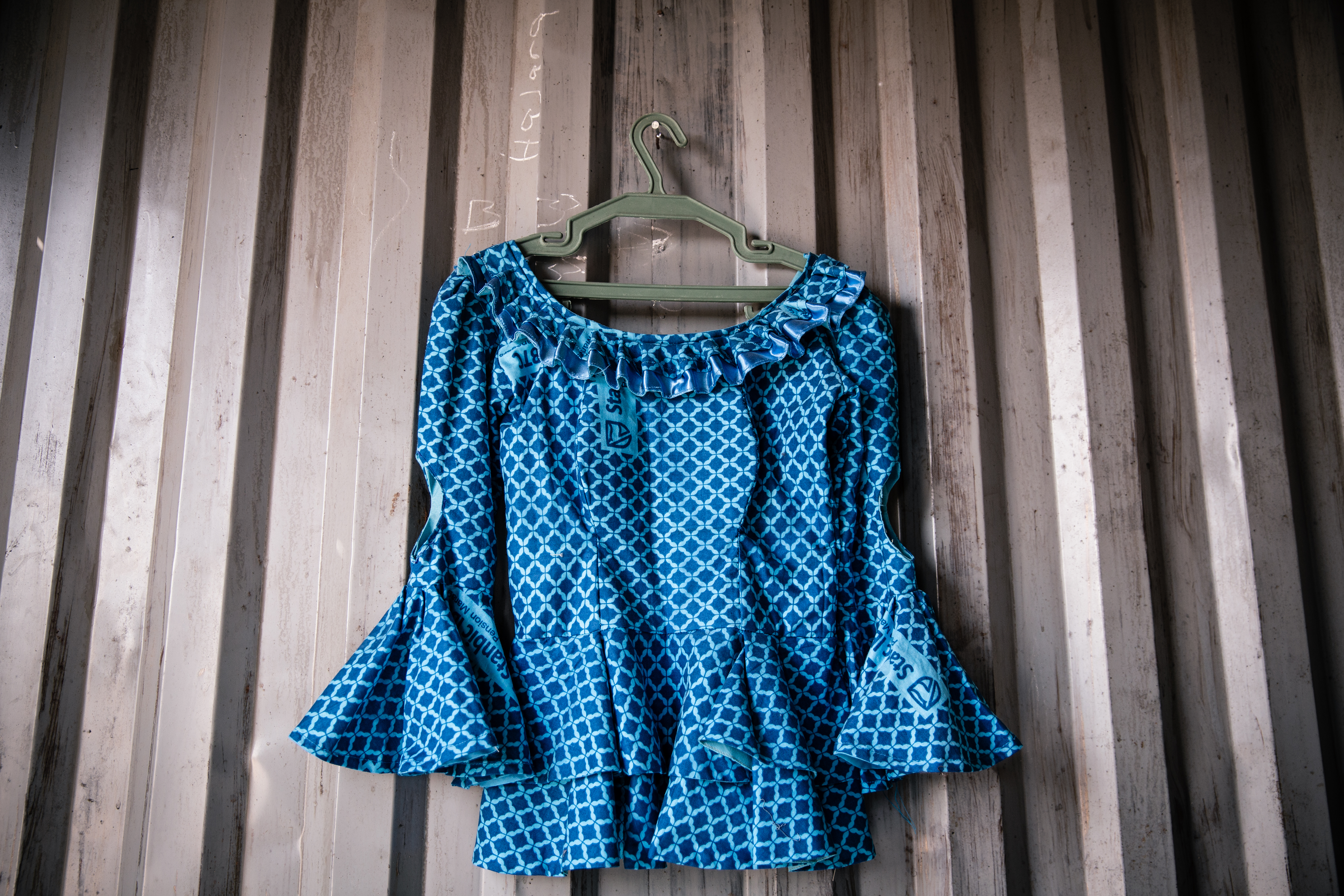 Aisha’s creation, striking against its starker surroundings, is not just a symbol of a life now far removed from her daily reality; it is also a testament to the hidden sacrifices and unbending will behind the elongated silhouettes and frilly hems seen hanging in shops like hers.