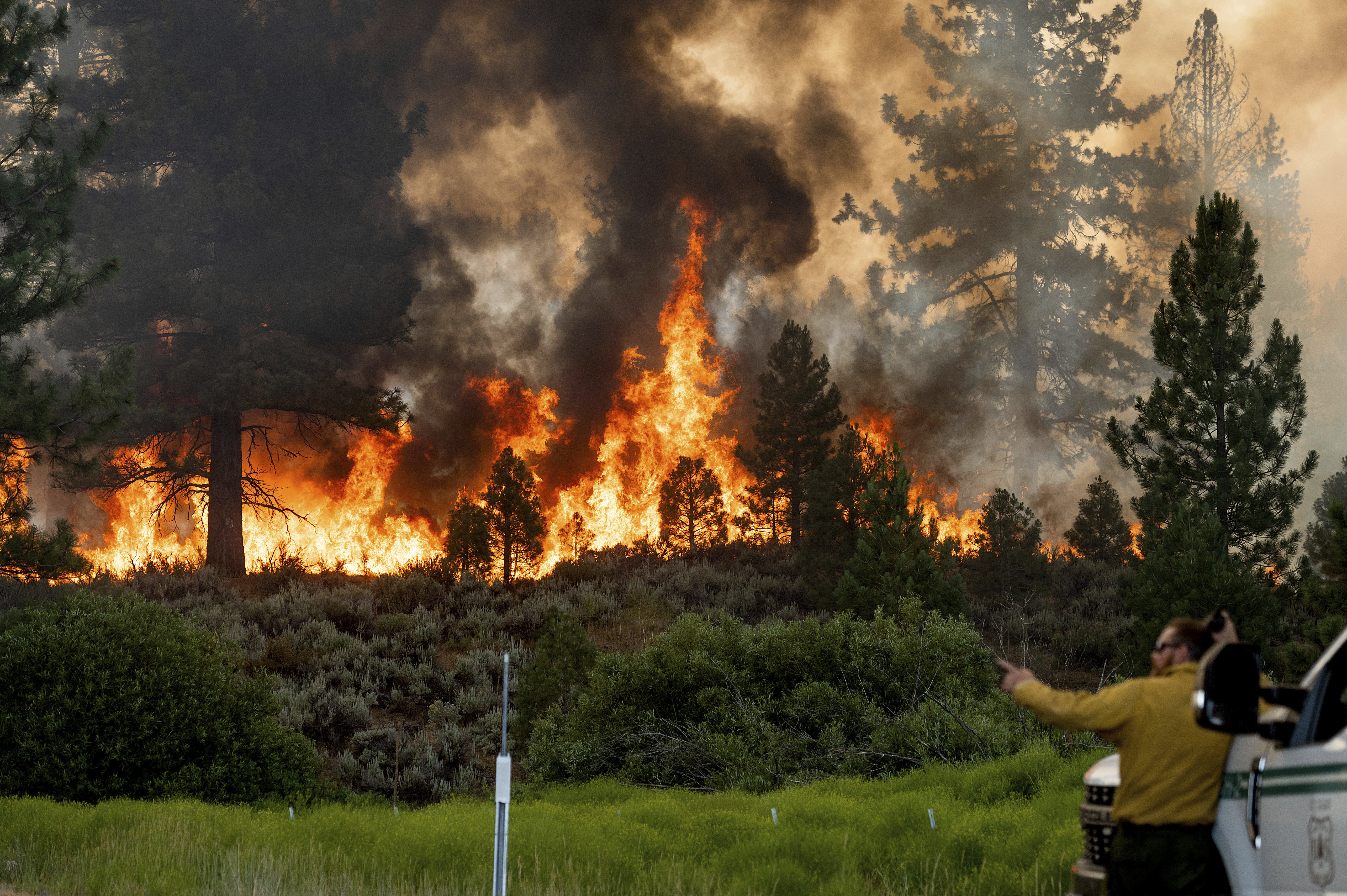 The largest wildfire of the year in California rages along the border with Nevada amid a brutal heatwave.