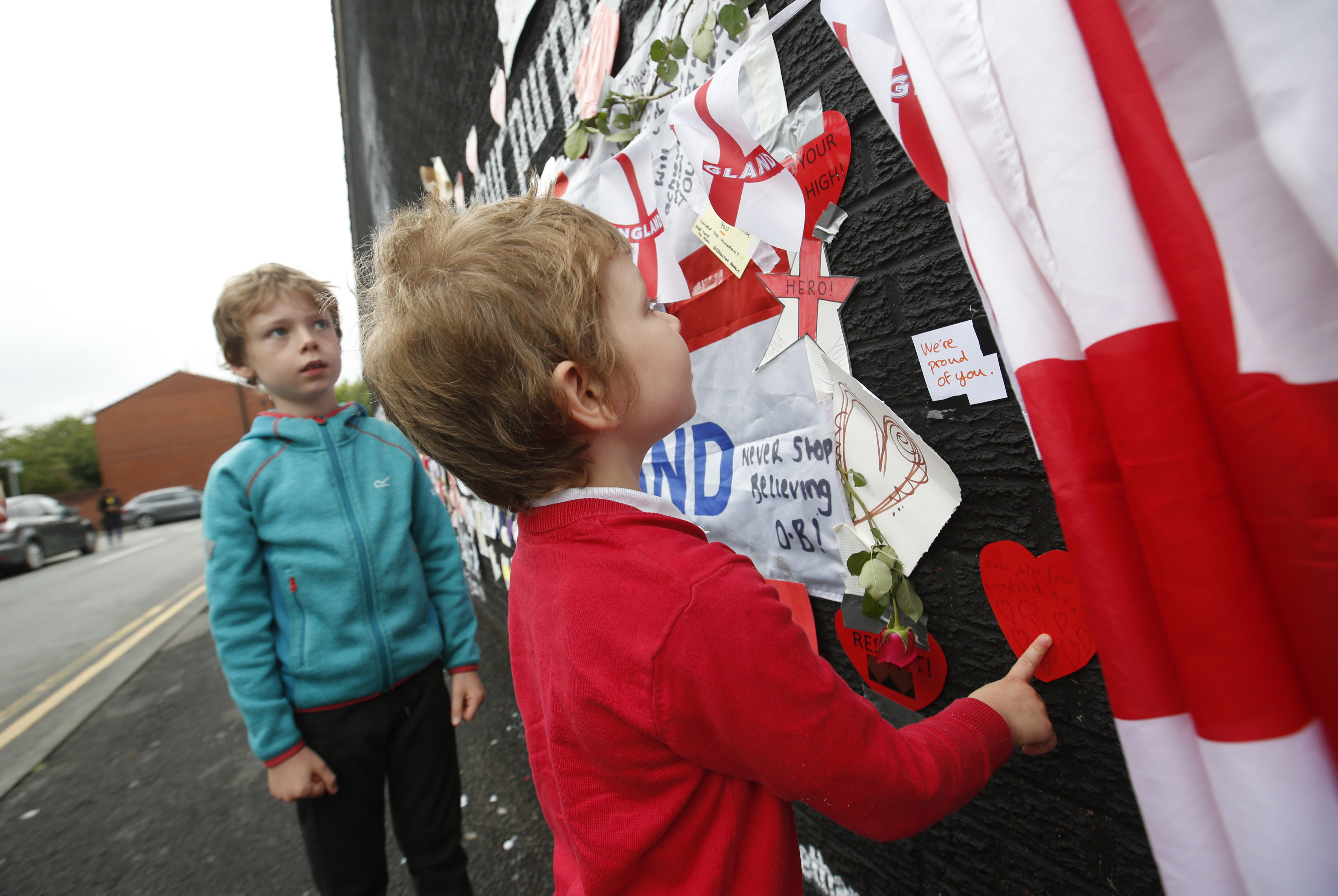 Rashford's mural is shown covered in messages of support. [Ed Sykes/Action Images via Reuters]