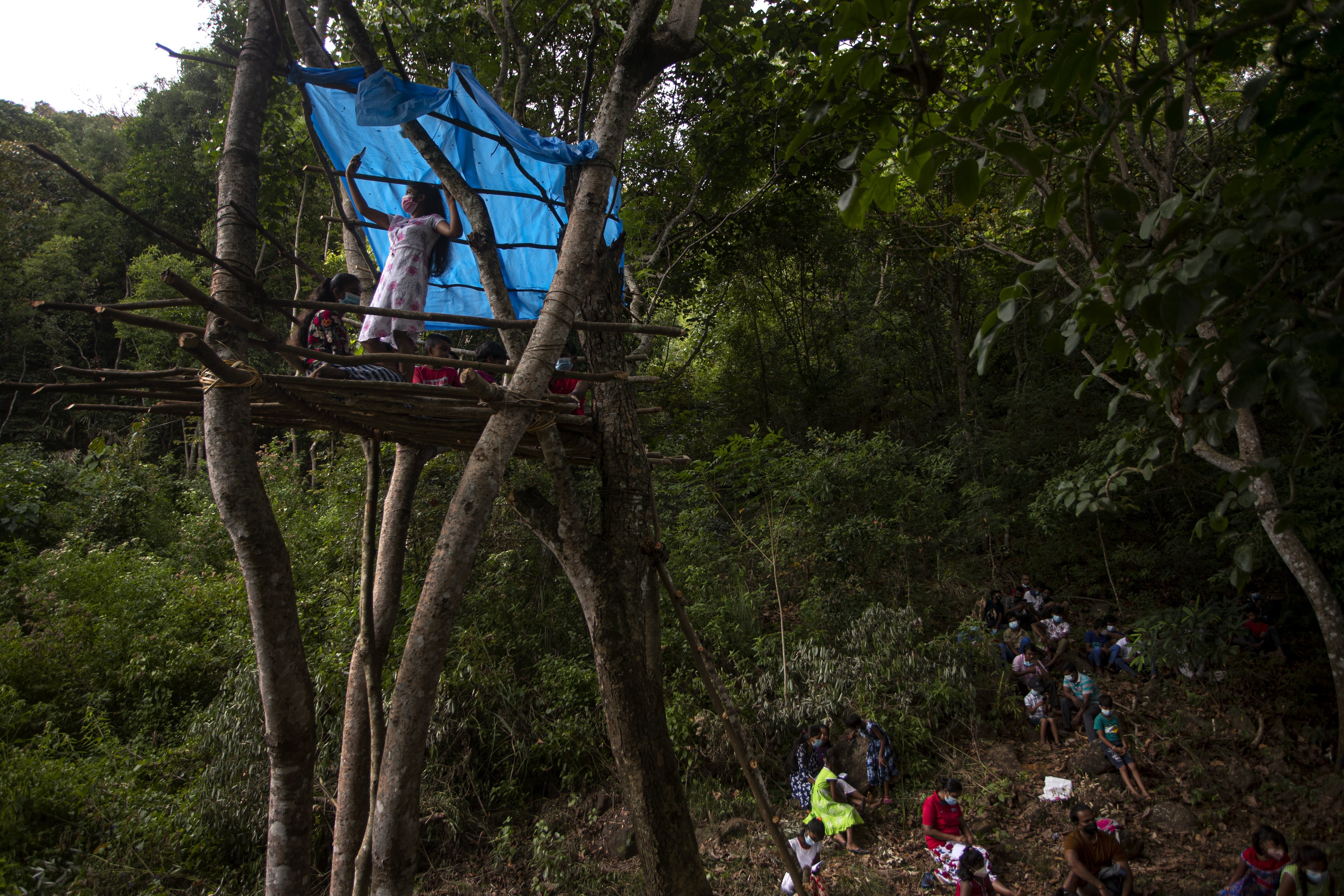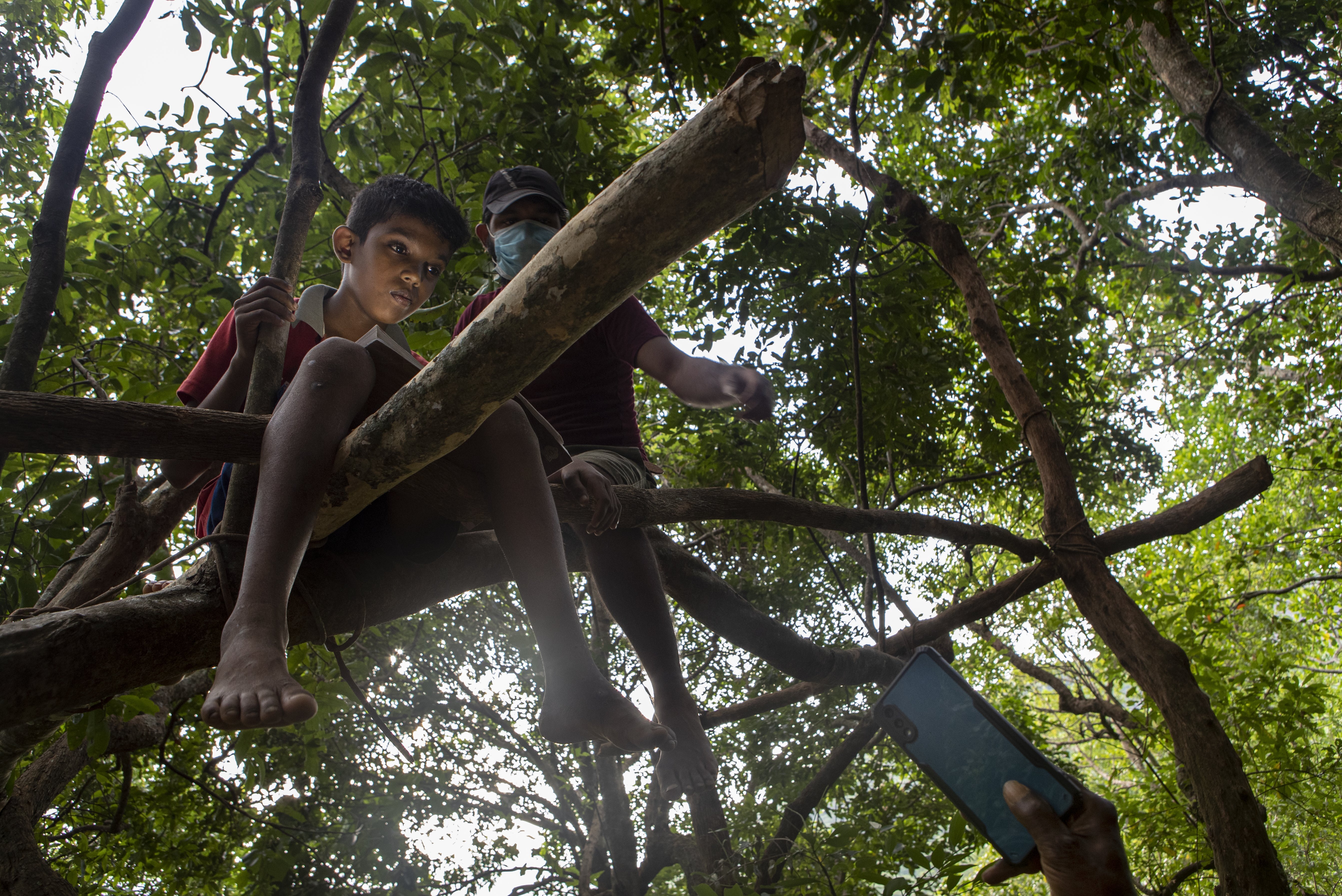 Sri Lankan children make a dangerous climb for online school