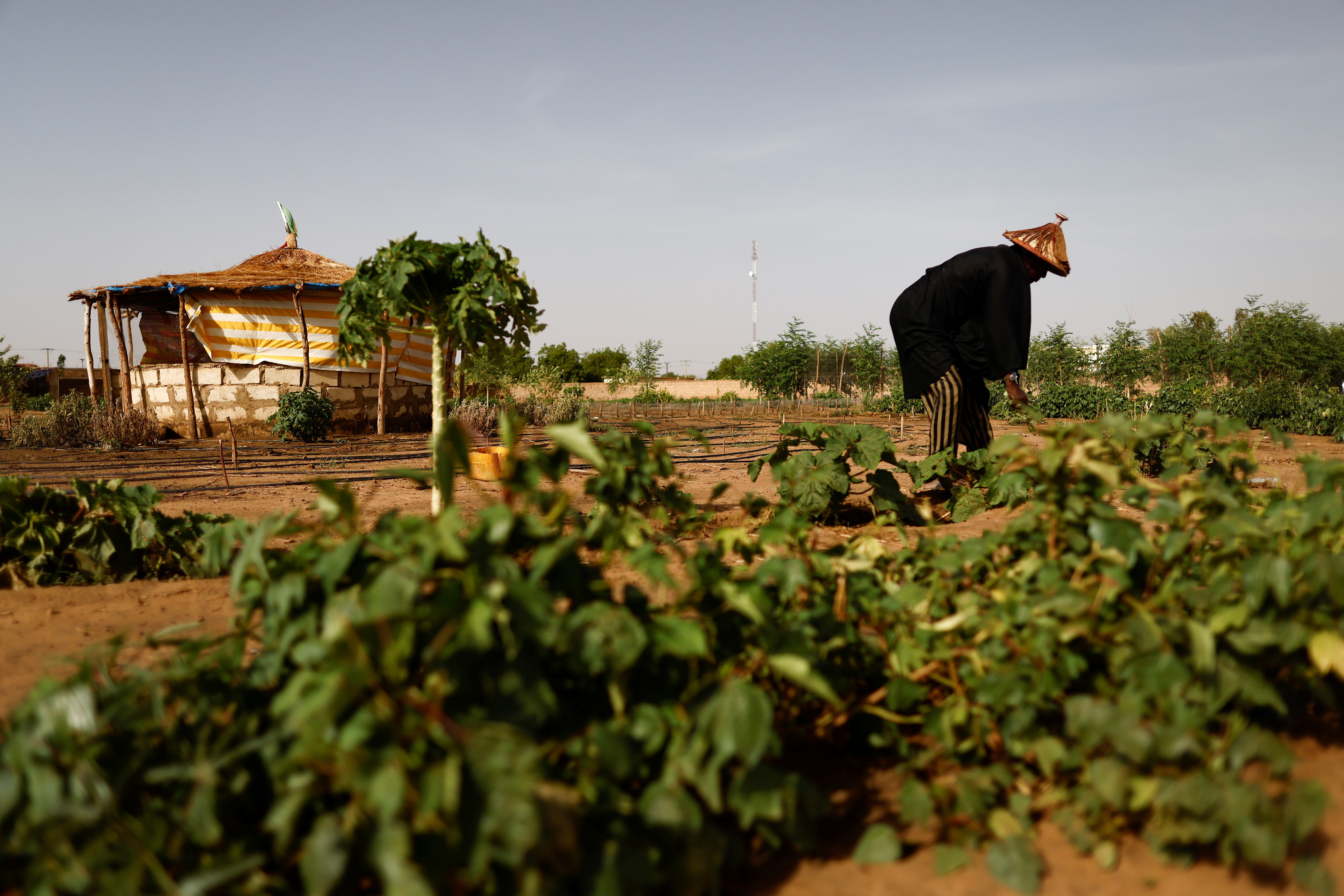 But in the eastern town of Kanel, the garden is thriving. Its caretakers solved a water pump issue by digging traditional irrigation canals. A concrete wall and guard dogs help keep out rodents that would eat the lush mint and hibiscus plants inside.