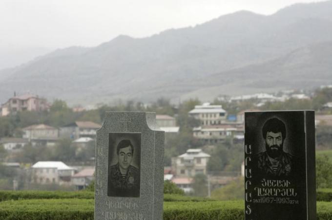 Tombstones of Karabakh soldiers, killed during fighting between Karabakh and Azerbaijan forces in 1993 [Reuters]