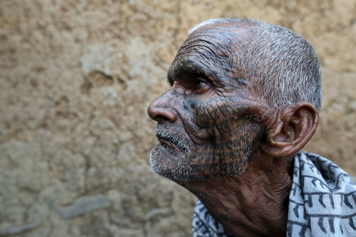 Seventy-five-year-old Samund Bai lives in the village of Baday Sipat and remembers being tattooed shortly after she married at the age of 13.