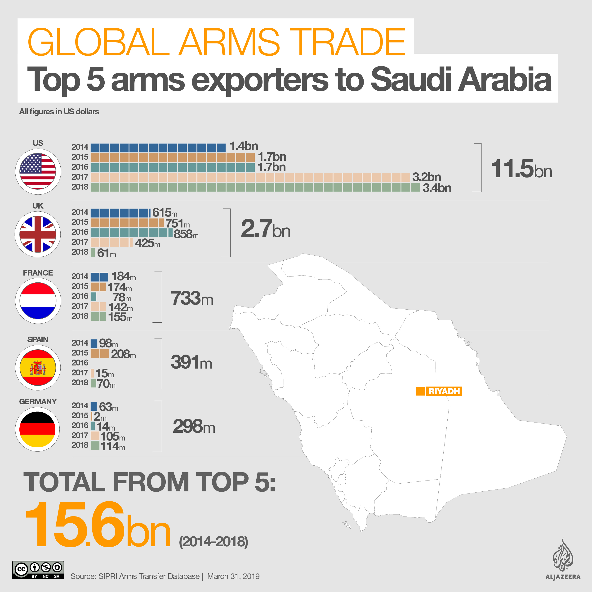 Saudi Arabia: The world’s largest arms importer from 2014-2018