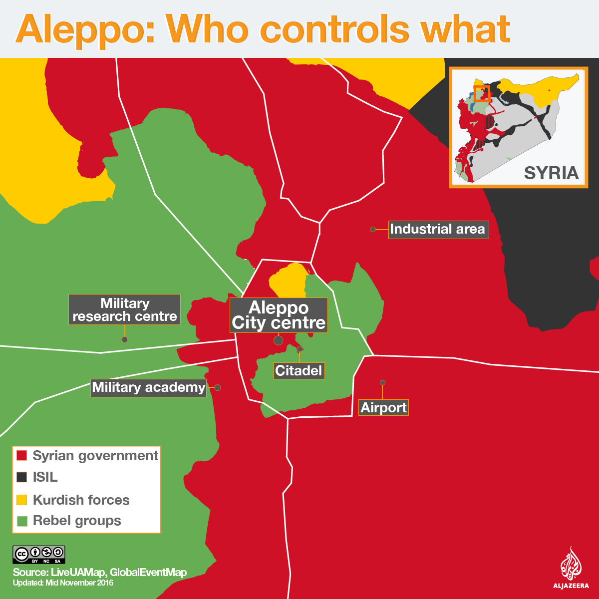 Other residents of east Aleppo, although they have already stayed through five years of civil war, now want to leave owing to the current conditions. “Of course, I want to get out,” Fatima Lababidi, a schoolteacher and mother of four, told Al Jazeera. Both she and Mohammad live near the dividing line between government- and rebel-held areas in Aleppo, near the citadel.
