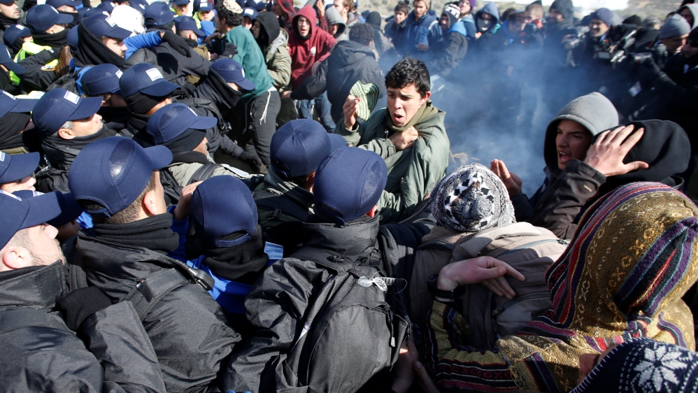 Israeli border police have clashed with Jewish settlers resisting the eviction of a hardline Jewish settlement outpost in the occupied West Bank after a court ruled the homes were built on private Palestinian land.