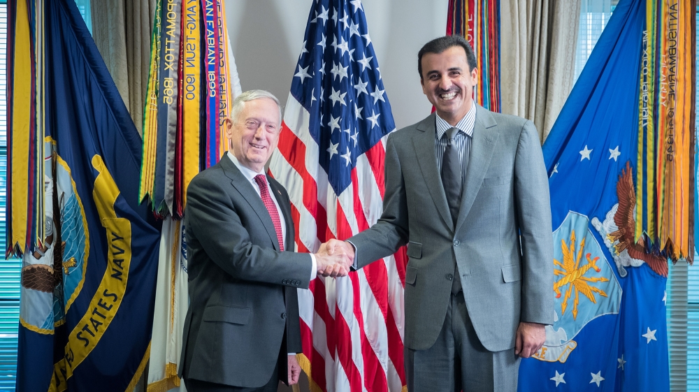 Speaking at a meeting in the Pentagon, Sheikh Tamim and James Mattis hailed countries’ ‘strength of relations’.