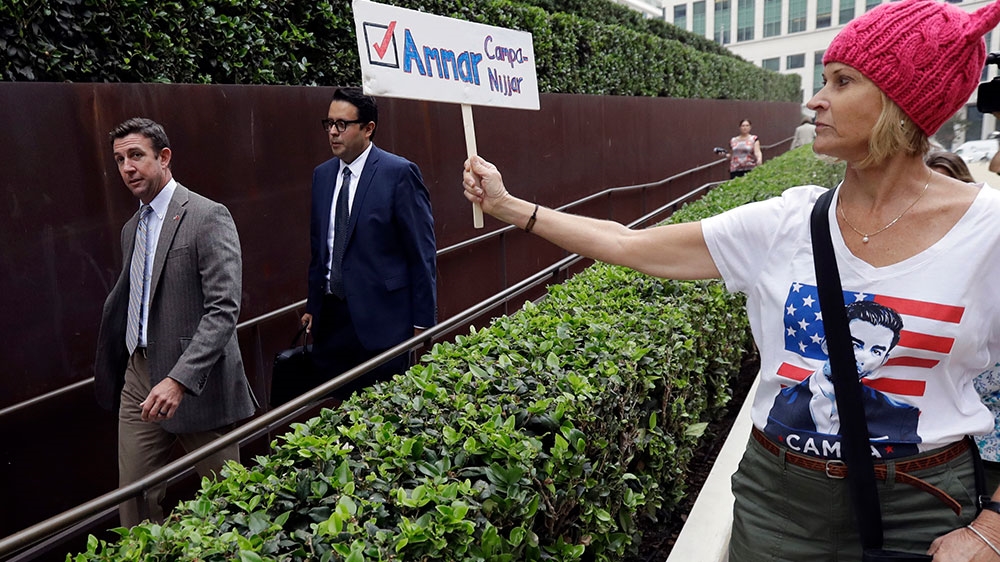 Mike Harris, Hunter’s spokesman, told Al Jazeera via email that the “national security concerns regarding our opponent have absolutely nothing to do with the fact that he has Palestinian heritage, it has absolutely everything thing to do with the fact that Ammar Campa-Najar has current, existing relationships with the PLO and CAIR.” Harris did not elaborate.