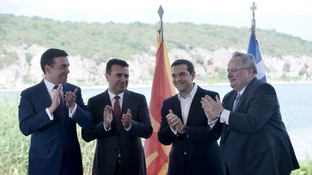 Foreign ministers sign deal in Greek village that would see Macedonia change its name to Republic of Northern Macedonia.