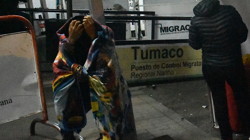 “They took everything we had – food, money, everything. We made it here before they closed the border, but now it doesn’t matter. We don’t even have IDs any more,” he said, wrapped in an old blanket to ward off the frigid temperature in the Colombian town of Rumichaca, which borders Ecuador. Rodriguez’s girlfriend, Deisy, wore sandals held together with duct tape.