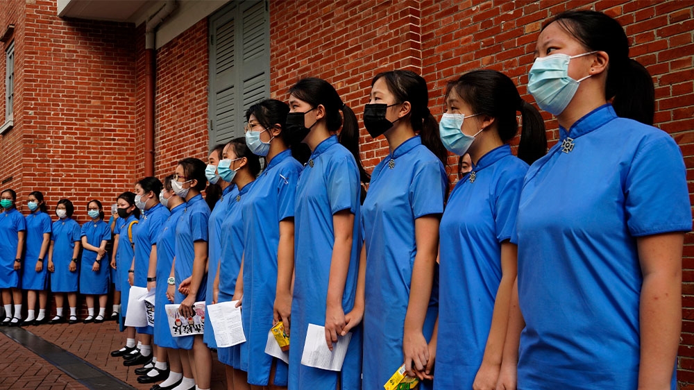 Hong Kong school students form human chain after weekend protests