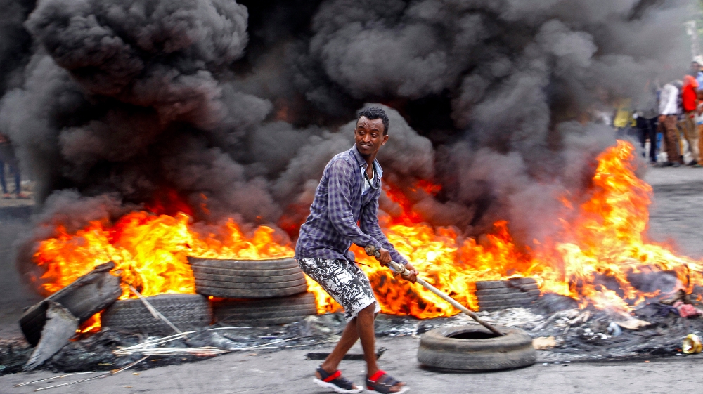 The shooting on Friday evening sparked protests in Mogadishu that continued on Saturday with crowds of young men burning tires and demanding justice.