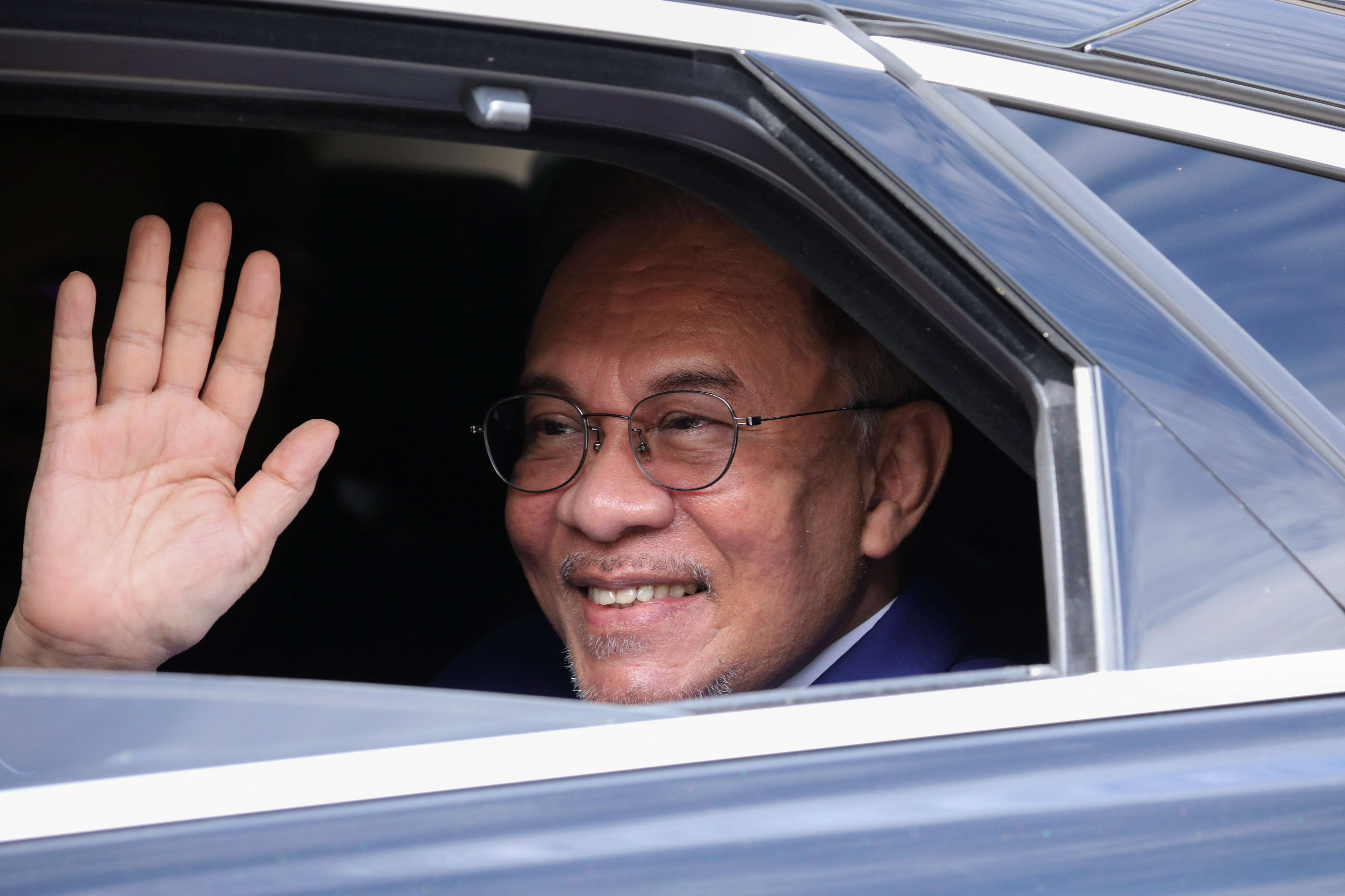 Local media reported Anwar’s car arrived at the palace at about 10.25am (02:25 GMT). He left after about an hour, smiling and waving to supporters and the media who had gathered at the palace gates.