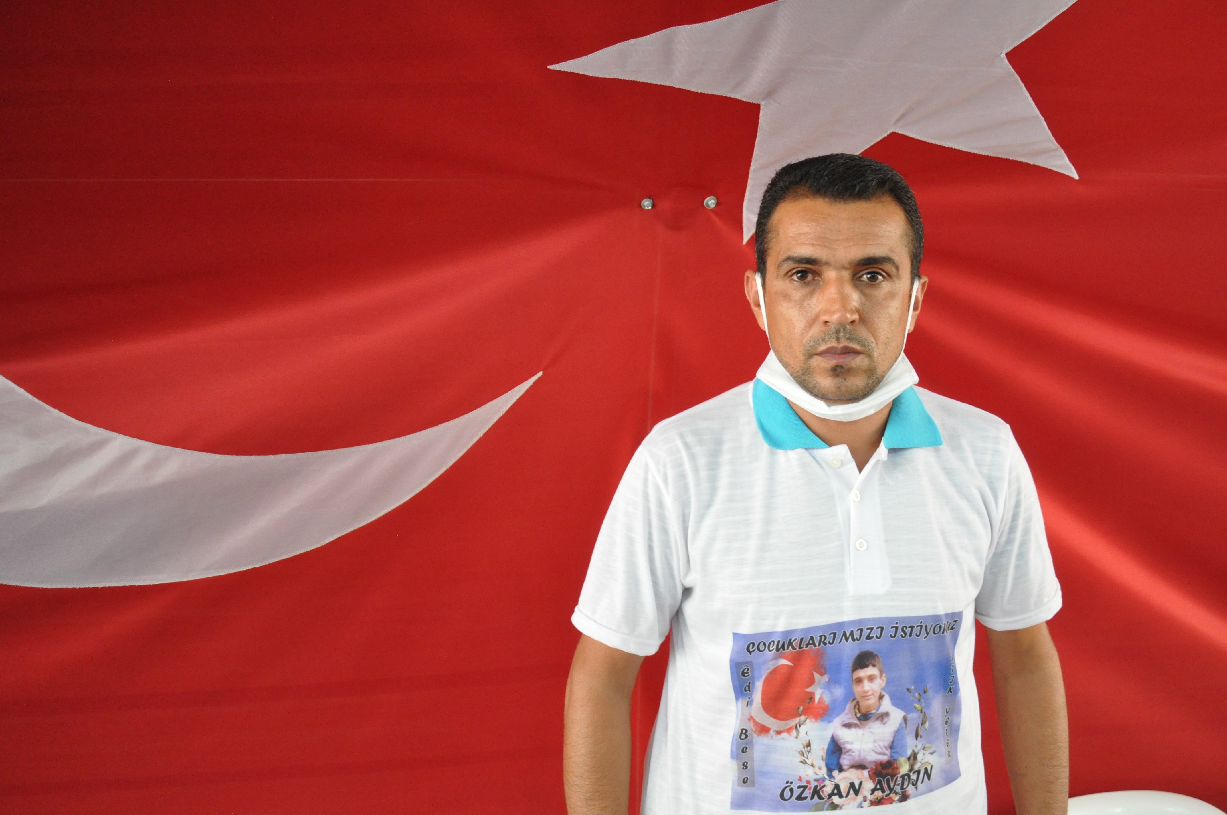 Diyarbakir, Turkey – Suleyman Aydin stood in front of an enormous Turkish flag wearing a T-shirt with a picture of a son he has not seen for five years.